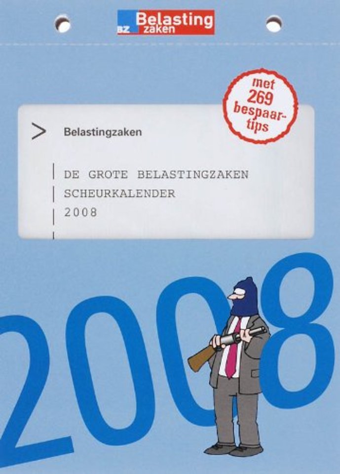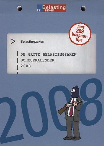 Het tijdschrift 'Belastingzaken' bestaat 20 jaar! Ter gelegenheid hiervan is de eerste editie van de 'De grote belastingzaken scheurkalender 2008' samengesteld. Een unieke scheurkalender boordevol wetenswaardigheden, cartoons, historische feiten en afbeeldingen. Bovenal bevat de kalender veel tips om ook in 2008 belasting te besparen.