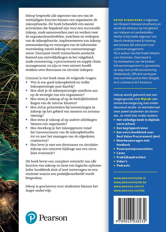 Inkoop geeft een volledige en toegankelijke introductie tot een van de veelzijdigste functies binnen een organisatie: de inkoop. Het is het enige studieboek met een prominente plek voor duurzaam en circulair inkopen en hoe dit kan bijdragen aan een circulaire economie.