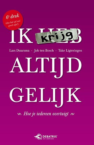'Ik krijg altijd gelijk' is een praktische handleiding voor iedereen die zijn meningen, ideeën en standpunten beter wil leren verkopen. Geen saai studieboek, maar een handige verzameling trucs, tips en adviezen die u direct kunt toepassen. Beproefde strategieën, verpakt in toegankelijke taal en getoetst aan de werkelijkheid van vandaag.