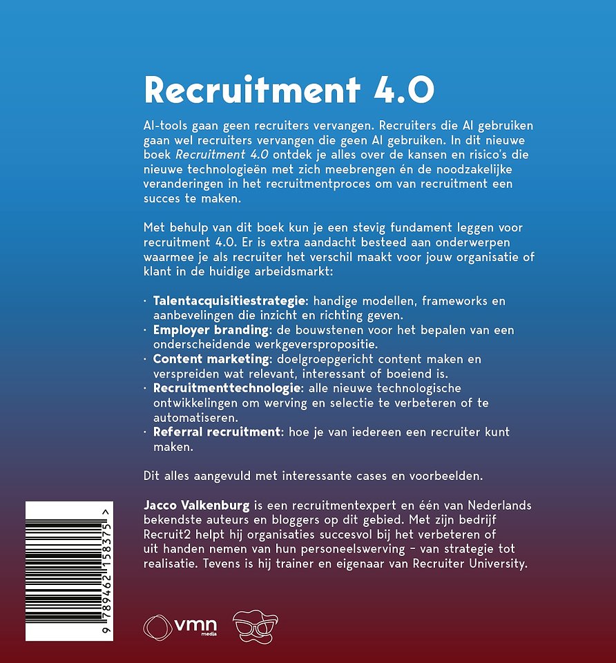 In dit nieuwe boek Recruitment 4.0 ontdek je alles over de kansen en risico’s die nieuwe technologieën met zich meebrengen én de noodzakelijke veranderingen in het recruitmentproces om van recruitment een succes te maken.