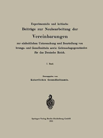 Experimentelle und kritische Beiträge zur Neubearbeitung der Vereinbarungen zur einheitlichen Untersuchung und Beurteilung von Nahrungs- und Genußmitteln sowie Gebrauchsgegenständen für das Deutsche Reich