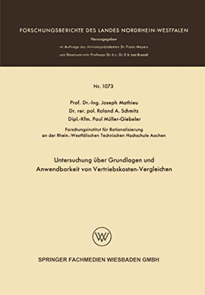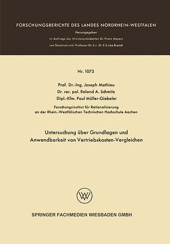 Untersuchung über Grundlagen und Anwendbarkeit von Vertriebskosten-Vergleichen