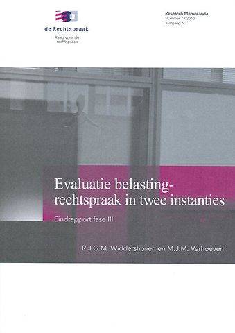 Het onderzoek 'Evaluatie belastingrechtspraak in twee instanties' is gedaan in opdracht van de Raad voor de rechtspraak en uitgevoerd door Prof. mr. R.J.G.M. Widdershoven en Mr. M.J.M. Verhoeven, beiden verbonden aan het Instituut voor Staats- en Bestuursrecht van de Universiteit Utrecht.