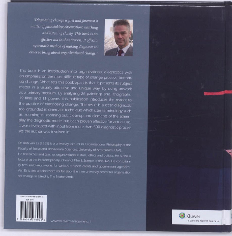 Rob van Es maakt u wegwijs in het stellen van de veranderdiagnose aan de hand van 26 schilderijen en litho's, 19 films en 11 gedichten. Door het ontleden van bijvoorbeeld een schilderij of gedicht leert u te kijken naar alle onderdelen van het kunstwerk en dus ook van de organisatie. Dit resulteert in een helder model, dat u meteen in de praktijk kunt toepassen.