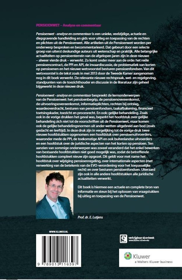 Pensioenwet - analyse en commentaar bespreekt de kernonderwerpen van de Pensioenwet: het pensioenbegrip, de pensioenovereenkomst, de uitvoeringsovereenkomst, informatieplichten, rechten bij ontslag, waardeoverdracht, besturen van pensioenfondsen, taakafbakening, financieel toetsingskader, toezicht en procesrecht. En ook: gelijke behandeling. Zoals ook in de vorige drukken het geval was, beperkt het hoofdstuk over gelijke behandeling zich niet tot de voorschriften uit de Pensioenwet, maar komen ook de gelijke behandelingsnormen uit ander wetten uitgebreid aan bod (zoals geslacht en leeftijd).
