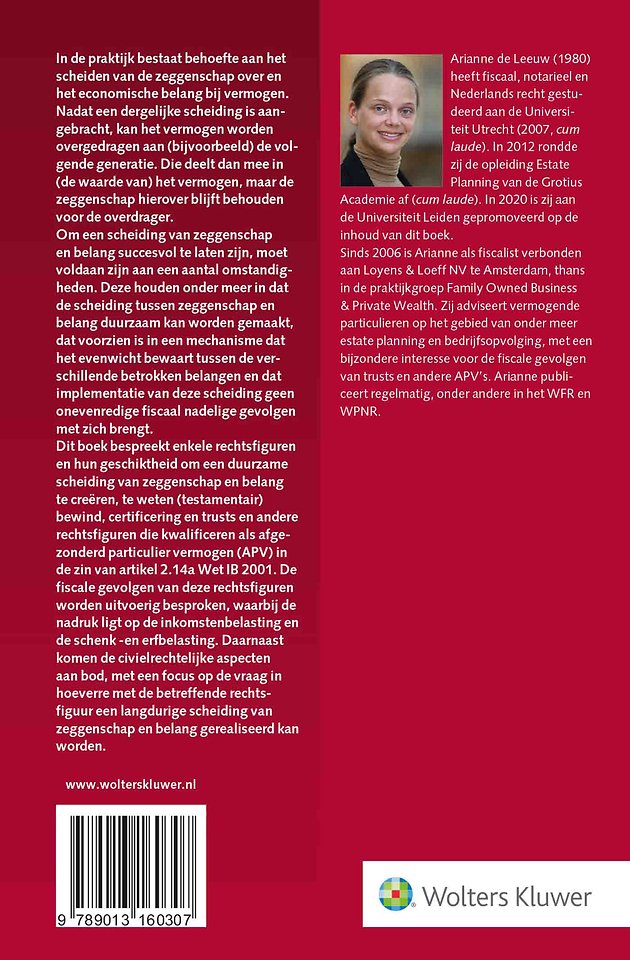 Scheiding van zeggenschap en belang in de familiesfeer stelt u als fiscalist op het gebied van estate planning bij uitstek in staat om vermogende particulieren passend en concreet te kunnen adviseren. De analyses van verschillende rechtsfiguren bieden u het broodnodige inzicht om gemakkelijk een vertaalslag naar de praktijk te maken.