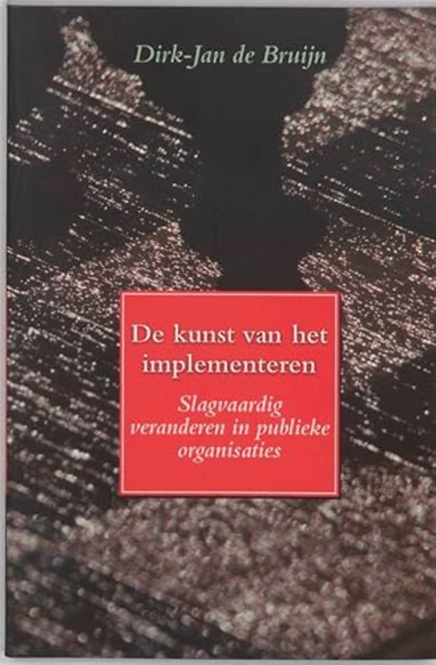 Meer over Dirk-Jan de BruijnNiet alleen in het bedrijfsleven vinden met enige regelmaat reorganisaties en verbeteroperaties plaats. Ook publieke organisaties moeten eraan geloven - zeker nu de gestelde eisen toenemen en de financiële middelen schaars zijn. Maar hoe implementeer je een verandering in een publieke organisatie zodanig dat dit ook daadwerkelijk leidt tot zichtbaar en merkbaar betere prestaties? Hoe beheers je nou zo'n omvangrijk implementatieproject? Hoe voorkom je dat het bij mooie plannen blijft? 'De kunst van het implementeren' biedt hiertoe een groot aantal praktische handvatten, gebaseerd op de jarenlange praktijkervaring van de auteur.