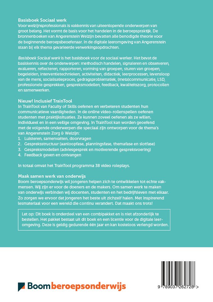 Voor welzijnsprofessionals is vakkennis van uiteenlopende onderwerpen van groot belang. Het vormt de basis voor het handelen in de beroepspraktijk. De bronnenboeken van Angerenstein Welzijn bevatten alle benodigde theorie voor de beginnende beroepsbeoefenaar. In de digitale leeromgeving van Angerenstein staan bij elk thema gevarieerde verwerkingsopdrachten.