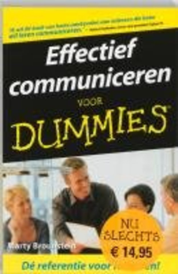 Goed communiceren is belangrijk voor iedere een onderneming. Een manager die zijn werknemers instrueert; collega's die bepaalde zaken moeten overleggen; de manager die uitlegt waarom bepaalde veranderingen moeten worden doorgevoerd. Als de communicatie niet goed verloopt zal er wrijving binnen een organisatie ontstaan. Toch wordt aan goed communiceren nog te weinig belang gehecht. Het boek 'Effectief communiceren voor dummies' behandelt alle manieren van communicatie binnen een bedrijf; praten, schrijven en luisteren. Het gaat in op verbale en non-verbale communicatie en maakt duidelijk hoe u in conflictsituaties moet reageren. Ook leert het hoe u zich op bepaalde gesprekken kunt voorbereiden: presentaties, interviews, vergaderingen en klachten van klanten. Het boek leert u om te gaan met conflicten, hoe u managementteams moet opbouwen en hoe u mensen kunt overtuigen.