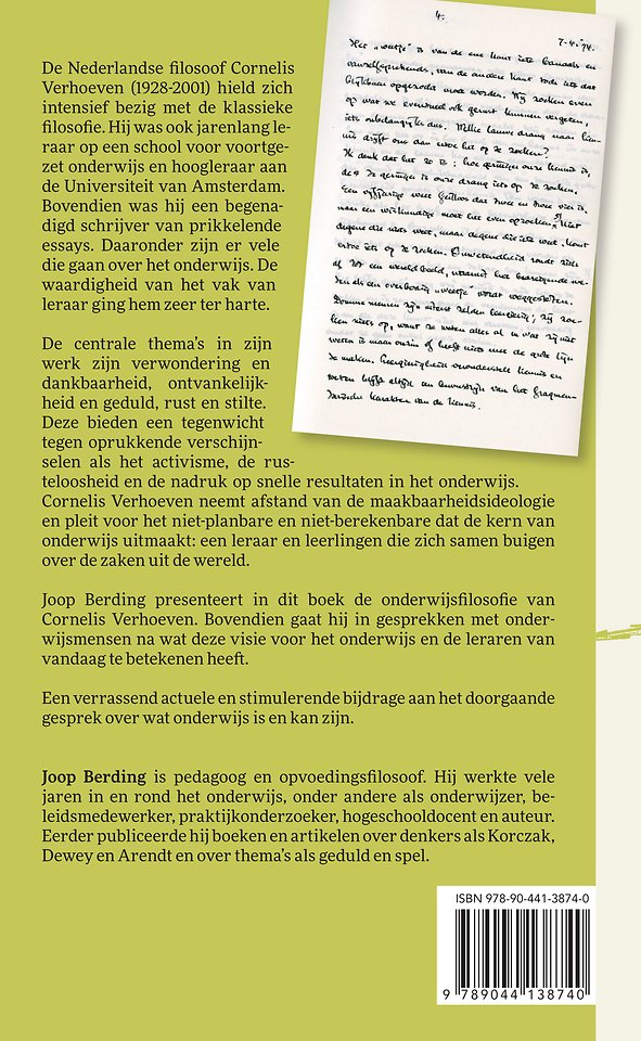 Joop Berding presenteert in dit boek de onderwijsfilosofie van Cornelis Verhoeven. Bovendien gaat hij in gesprekken met onderwijsmensen na wat deze visie voor het onderwijs en de leraren van vandaag te betekenen heeft.