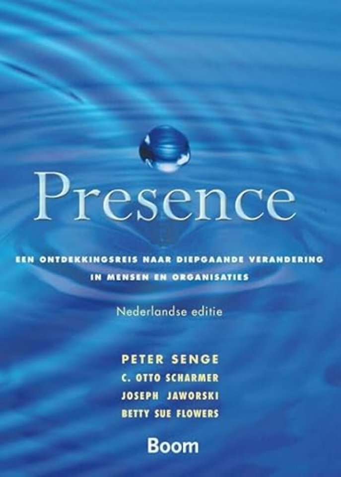 'Presence' laat zien dat het er in de lerende organisatie om gaat een ommezwaai te maken van het vertrouwde 'downloading' (de gebruikelijke manier van denken en handelen hanteren) naar precencing' (bewust ervaren van het hier en nu en zien wat zou kunnen zijn). De auteurs illustreren hun verghaal aan de hand van vele voorbeelden, vaak roerende persoonlijke verhalen en inspirerende 'succes stories' uit het zakenleven. Daarbij passeert een breed scala aan beroemde denkers de revue, waaronder Lao Tse, Goethe, Martin Bubers en Carl Jung.