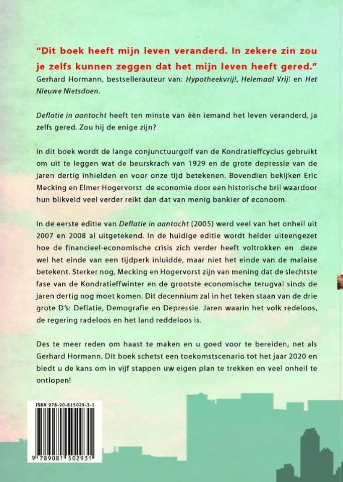 economie deflatie crisis kondratieff-cyclus depressie geschiedenis financieel management schuld beleggen kredietcrisis huizenmarkt vertrouwenscrisis economische cycli toekomst centrale banken hyperinflatie geldtheorie overheidsbeleid financiële risico's financiële zeepbellen recessie monetair beleid nederland hebzucht en angst geldcreatie maatschappelijke onrust geldsysteem vermogensbescherming werkloosheid kredietverlening
