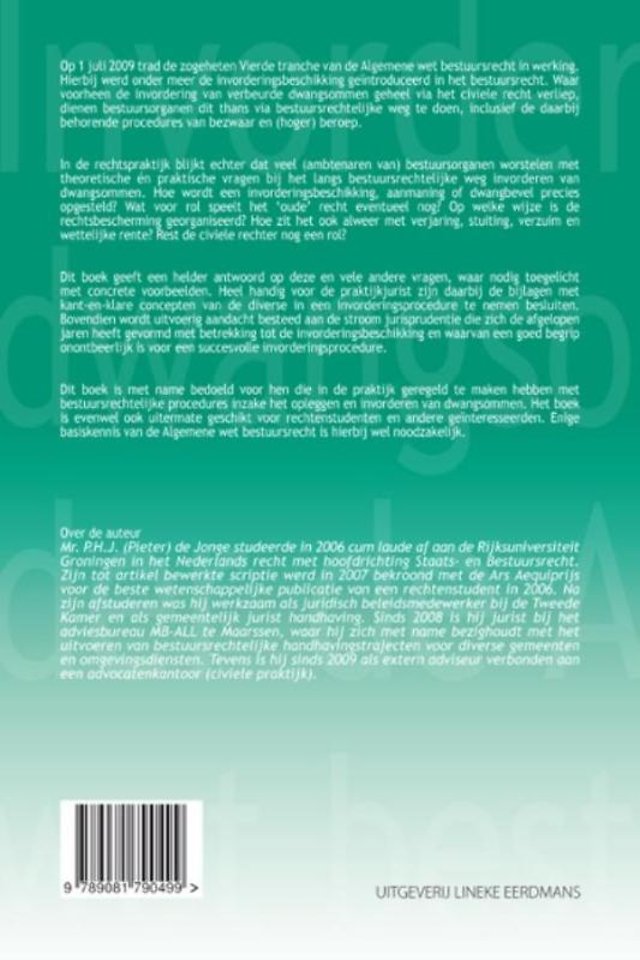 In de rechtspraktijk blijkt echter dat veel (ambtenaren van) bestuursorganen worstelen met theoretische én praktische vragen bij het langs bestuursrechtelijke weg invorderen van dwangsommen. Hoe wordt een invorderingsbeschikking, aanmaning of dwangbevel precies opgesteld? Wat voor rol speelt het 'oude' recht eventueel nog? Op welke wijze is de rechtsbescherming georganiseerd? Hoe zit het ook alweer met verjaring, stuiting, verzuim en wettelijke rente? Rest de civiele rechter nog een rol?