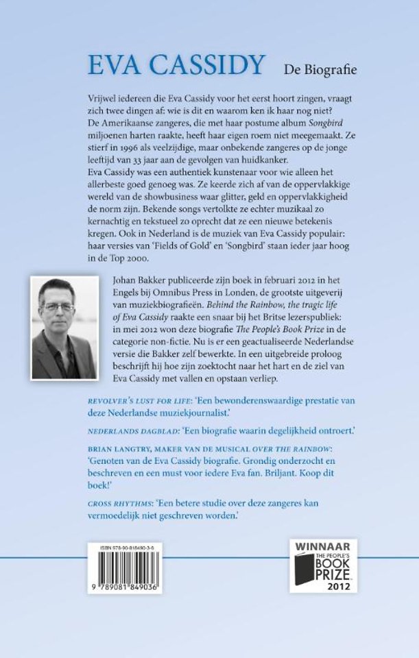 Johan Bakker publiceerde zijn boek in februari 2012 in het Engels bij Omnibus Press in Londen, de grootste uitgeverij van muziekbiografieën. Behind the Rainbow, the tragic life of Eva Cassidy raakte een snaar bij het Britse lezerspubliek: in mei 2012 won deze biografie The People's Book Prize in de categorie non-fictie. Nu is er een geactualiseerde Nederlandse versie die Bakker zelf bewerkte. In een uitgebreide proloog beschrijft hij hoe zijn zoektocht naar het hart en de ziel van Eva Cassidy met vallen en opstaan verliep.