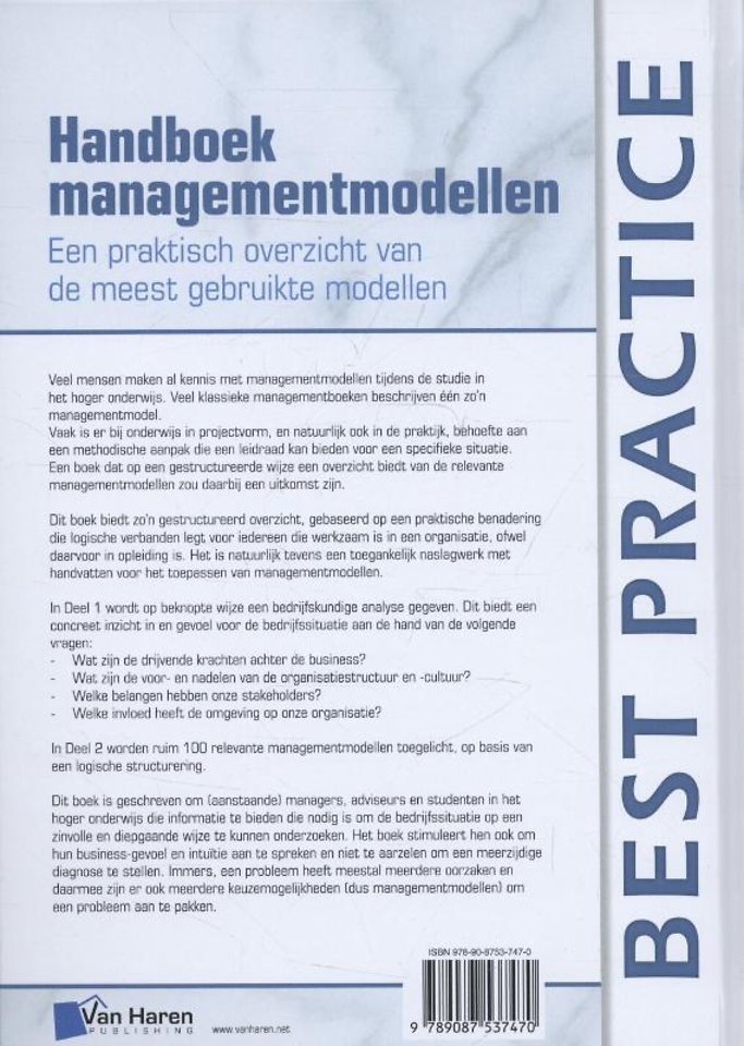 In Deel 2 worden ruim 100 relevante managementmodellen toegelicht, op basis van een logische structurering.