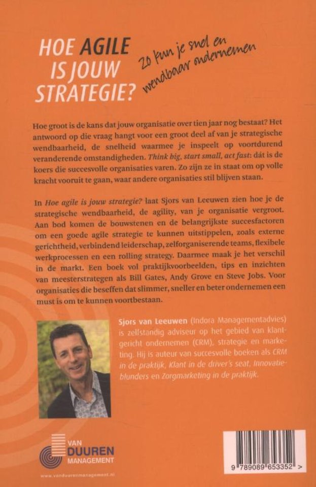 In dit boek laat Sjors van Leeuwen zien hoe je de strategische wendbaarheid, de agility, van je organisatie vergroot. Aan bod komen de bouwstenen en de belangrijkste succesfactoren om een goede agile strategie te kunnen uitstippelen, en zo het verschil te maken in je markt.