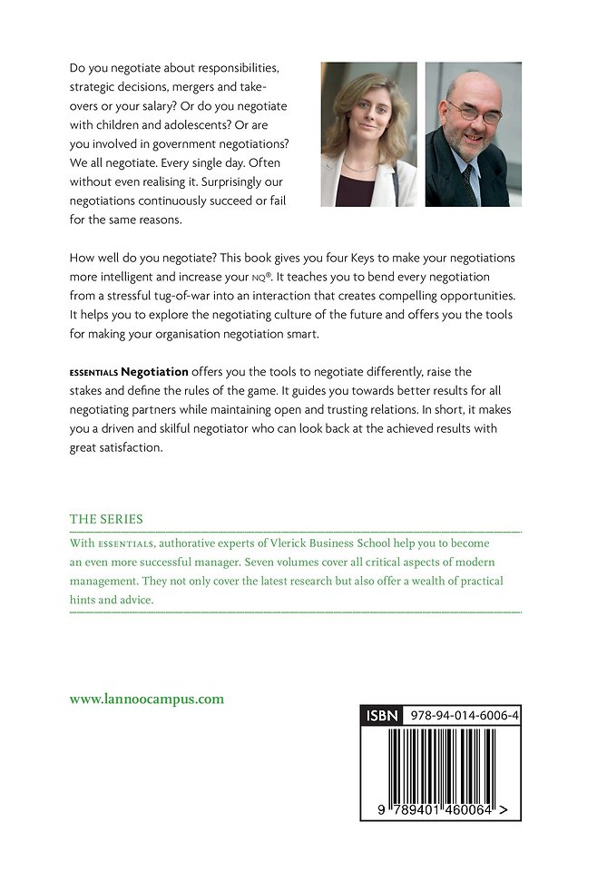 How well do you negotiate? This book gives you four Keys to make your negotiations more intelligent and increase your nq®. It teaches you to bend every negotiation from a stressful tug-of-war into an interaction that creates compelling opportunities. It helps you to explore the negotiating culture of the future and offers you the tools for making your organisation negotiation smart.