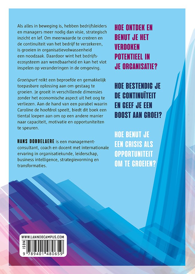 Groeispurt reikt een beproefde en gemakkelijk toepasbare oplossing aan om gestaag te groeien. Je groeit in verschillende dimensies zonder het economische aspect uit het oog te verliezen. Aan de hand van een parabel waarin Caroline de hoofdrol speelt, biedt dit boek een tiental loepen aan om op een andere manier naar capaciteit, motivatie en opportuniteiten te speuren.