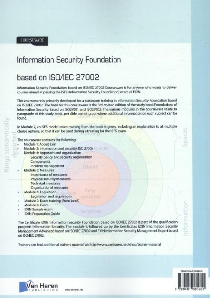 'Information Security Foundation based on ISO/IEC 27002 Courseware' is for anyone who wants to deliver courses aimed at passing the ISFS (Information Security Foundation) exam of EXIN.