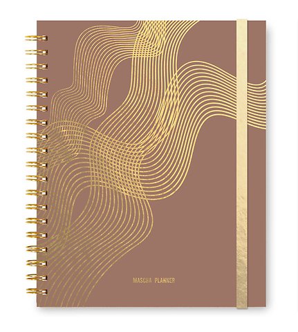 De nieuwe Mascha planner 2025 heeft een mooie Mocha uitstraling met gouden lijnenspel.