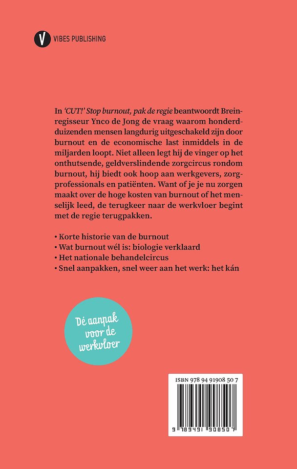 In 'CUT!' Stop burnout, pak de regie beantwoordt Breinregisseur Ynco de Jong de vraag waarom honderdduizenden mensen langdurig uitgeschakeld zijn door burnout en de economische last inmiddels in de miljarden loopt.