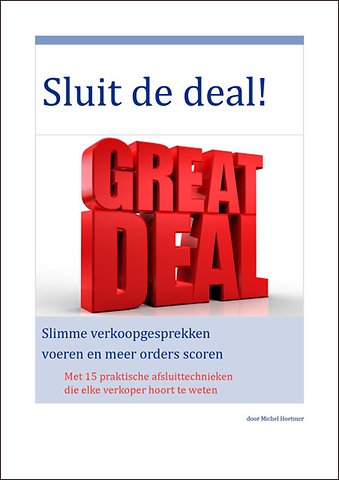 Uiteraard vindt u nog veel meer tips en adviezen in dit compacte e-boek. U leert onder andere 15 afsluittechnieken die elke verkoper hoort te weten en moet kunnen toepassen. Kortom: slimme verkoopgesprekken voeren en meer orders scoren!