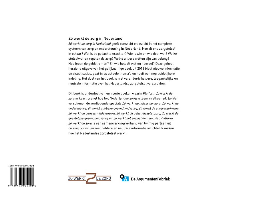 Dit boek is onderdeel van een serie boeken waarin Platform Zó werkt de zorg in kaart brengt hoe het Nederlandse zorgsysteem in elkaar zit. Eerder verschenen de verdiepende specials Zó werkt de huisartsenzorg, Zó werkt de ouderenzorg, Zó werkt publieke gezondheidszorg, Zó werkt de zorgverzekering, Zó werkt de geneesmiddelenzorg, Zó werkt de gehandicaptenzorg, Zó werkt de geestelijke gezondheidszorg en Zó werkt het sociaal domein. Het Platform Zó werkt de zorg is een samenwerkingsverband van twintig partijen uit de zorg. Zij willen met heldere en neutrale informatie inzichtelijk maken