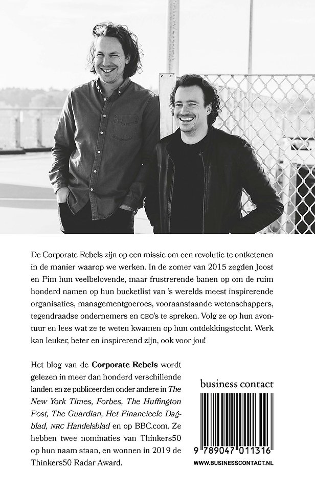 Meer over de auteursJoost Minnaar en Pim de Morree, beter bekend als de Corporate Rebels, zijn op een missie om een revolutie te ontketenen in de manier waarop we werken.