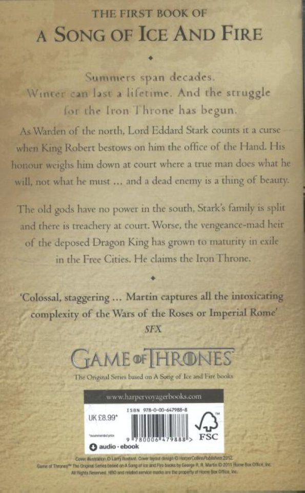 The first volume of A Song of Ice and Fire, the greatest fantasy epic of the modern age. Game of Thrones is now a major TV series from HBO, starring Sean Bean.