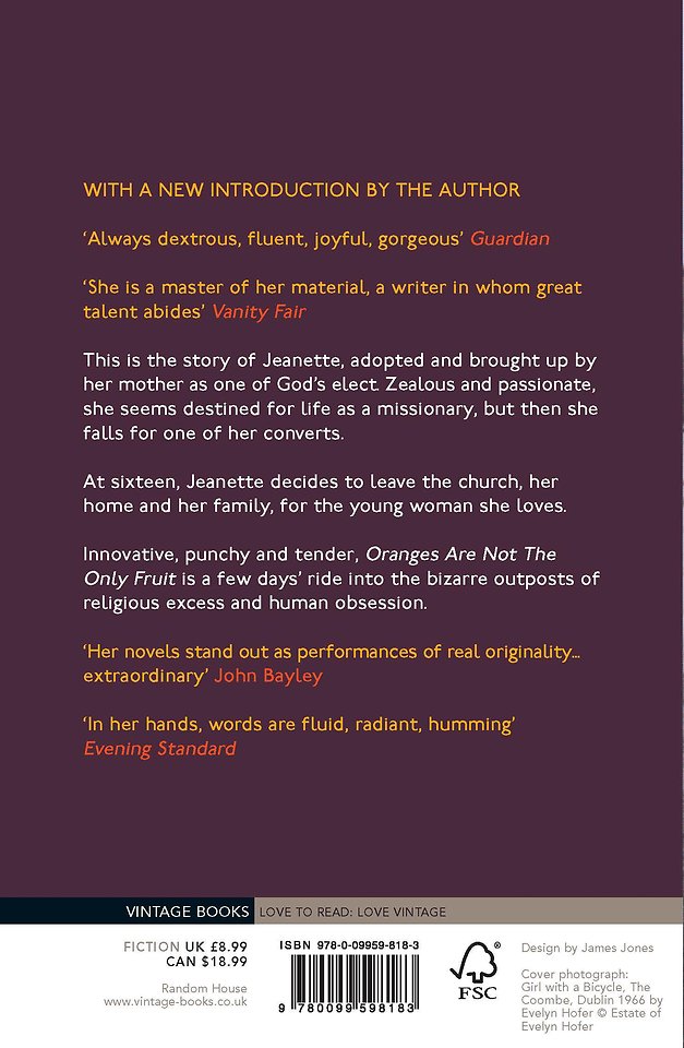 At sixteen, Jeanette decides to leave the church, her home and her family, for the young woman she loves. Innovative, punchy and tender, Oranges Are Not the Only Fruit is a few days ride into the bizarre outposts of religious excess and human obsession.