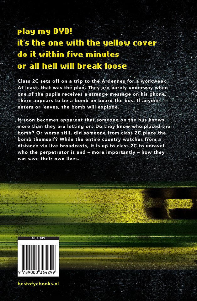 Class 2C sets off on a coach trip to the Ardennes for a work week. At least, that was the plan. They are barely underway when one of the pupils receives a strange message on his phone. There appears to be a bomb on board the bus. No-one may enter or leave, otherwise the bomb will explode. It soon becomes apparent that someone on the bus knows more about this than they are letting on. Does one of the pupils know who placed the bomb? Or worse still, did someone from class 2C place the bomb themself? What happened over the preceding months for things to get to this stage? Not just at school but also in the students’ and teachers’ homes. Plenty of people turn out to have motives and hidden agendas. But who is really behind it? And while the whole of the Netherlands watches from a distance via live broadcasts, it is up to class 2C to unravel who the perpetrator is and, more importantly, how they can save their own lives.