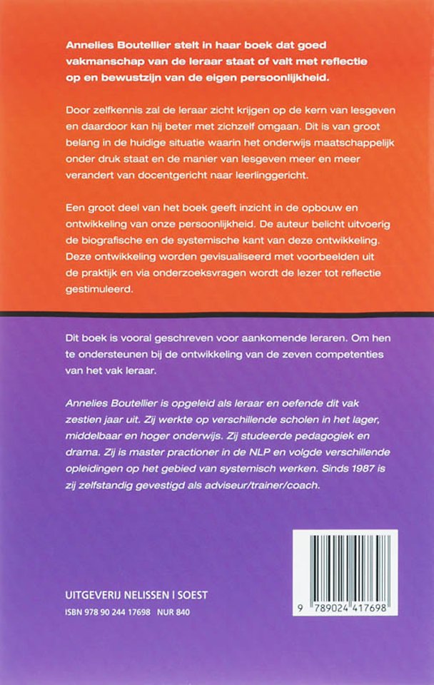 Annelies Boutellier stelt in haar boek dat goed vakmanschap van de leraar staat of valt met reflectie op en bewustzijn van de eigen persoonlijkheid.