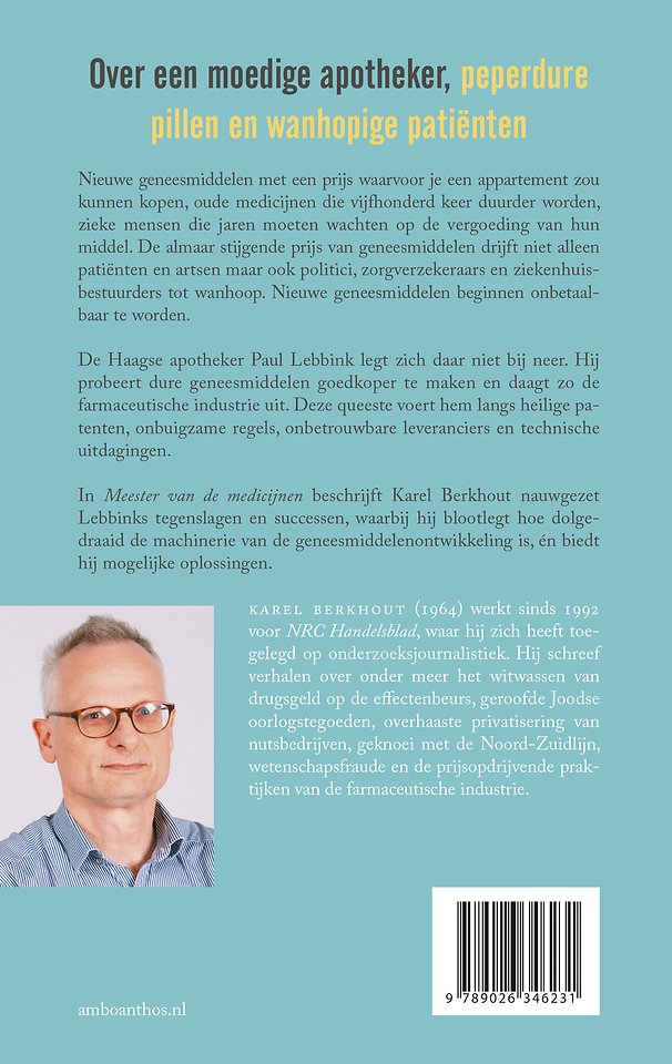 In Meester van de medicijnen beschrijft Karel Berkhout nauwgezet Lebbinks tegenslagen en successen, waarbij hij blootlegt hoe dolgedraaid de machinerie van de geneesmiddelenontwikkeling is en een idee geeft van hoe dit gefikst zou kunnen worden.