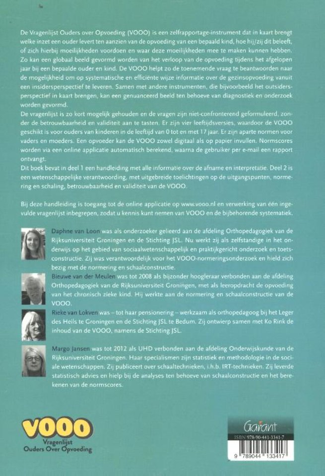 Dit boek bevat in deel 1 een handleiding met alle informatie over de afname en interpretatie. Deel 2 is een wetenschappelijke verantwoording, met uitgebreide toelichtingen op de uitgangspunten, normering en schaling, betrouwbaarheid en validiteit van de VOOO.