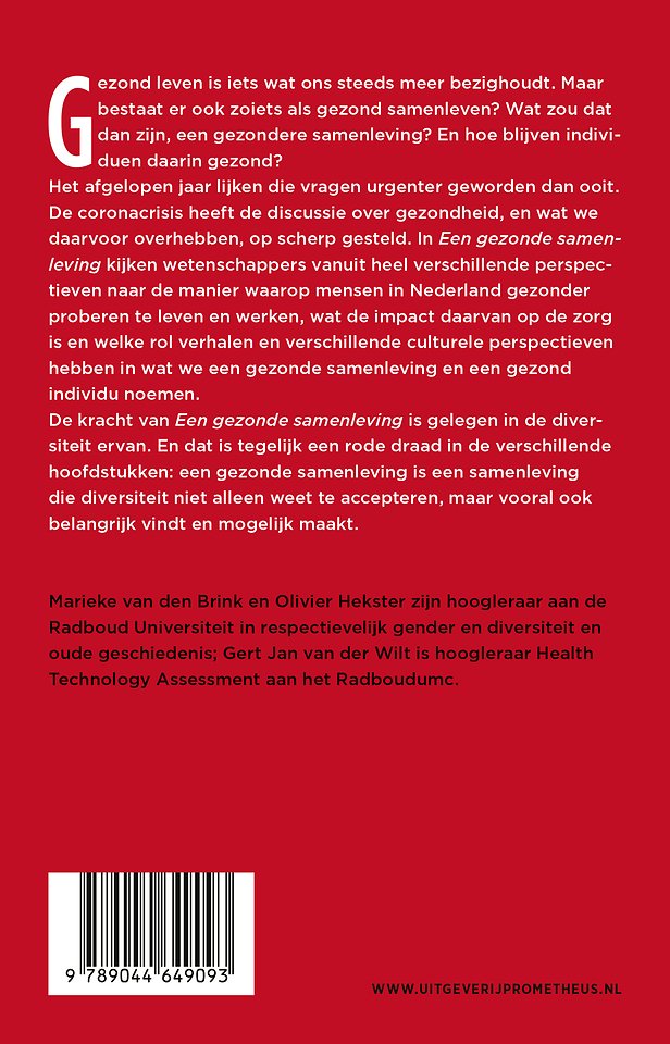Gezond leven is iets wat ons steeds meer bezighoudt. Maar bestaat er ook zoiets als gezond samenleven? Wat zou dat dan zijn, een gezondere samenleving? En hoe blijven individuen daarin gezond? Het afgelopen jaar lijken die vragen urgenter geworden dan ooit. De coronacrisis heeft de discussie over gezondheid, en wat we daarvoor overhebben, op scherp gesteld.
