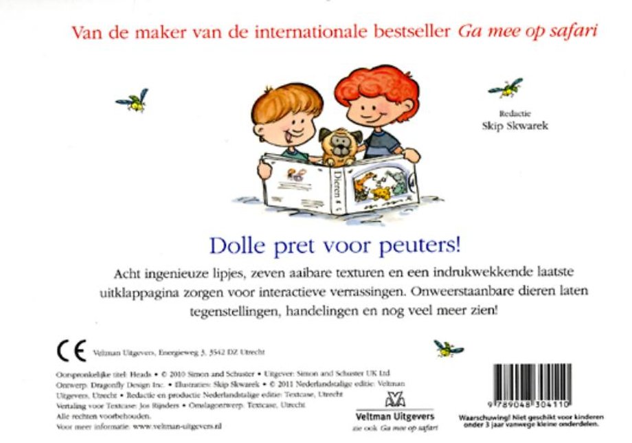 Na het leuke en succesvolle boek Ga mee op safari is er nu Dieren met acht ingenieuze lipjes, zeven aaibare texturen en een indrukwekkende laatste uitklappagina. Dit boek zit boordevol interactieve verrassingen en laat kinderen zo kennismaken met een groot aantal verschillende dieren, tegenstellingen en nog veel meer!