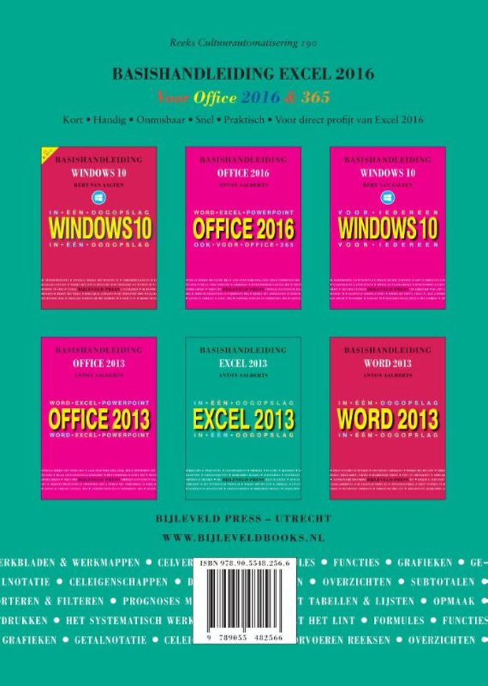 Alle mogelijkheden van Excel 2016 wat betreft rekenen, werken met formules en het maken van grafieken komen stap voor stap aan bod. Bovendien is er veel aandacht voor het handig beheren van gegevens (zoals adreslijsten) met Excel. De duidelijke uitleg, de beknopte opzet, de vele illustraties, het handige register en de scherpe prijs maken dit boek tot een klassieker in z'n soort.