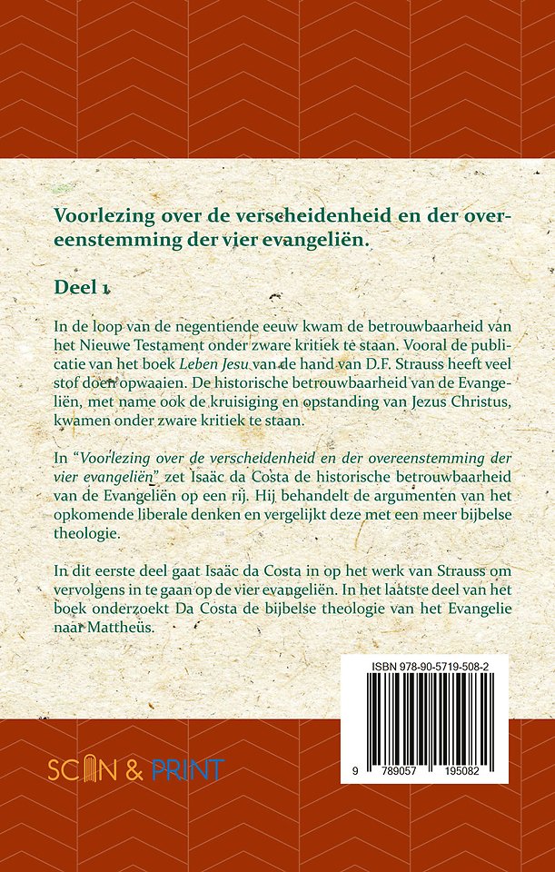 In "Voorlezing over de verscheidenheid en der overeenstemming der vier evangeliën" zet Isaäc da Costa de historische betrouwbaarheid van de Evangeliën op een rij. Hij behandelt de argumenten van het opkomende liberale denken en vergelijkt deze met een meer bijbelse theologie.