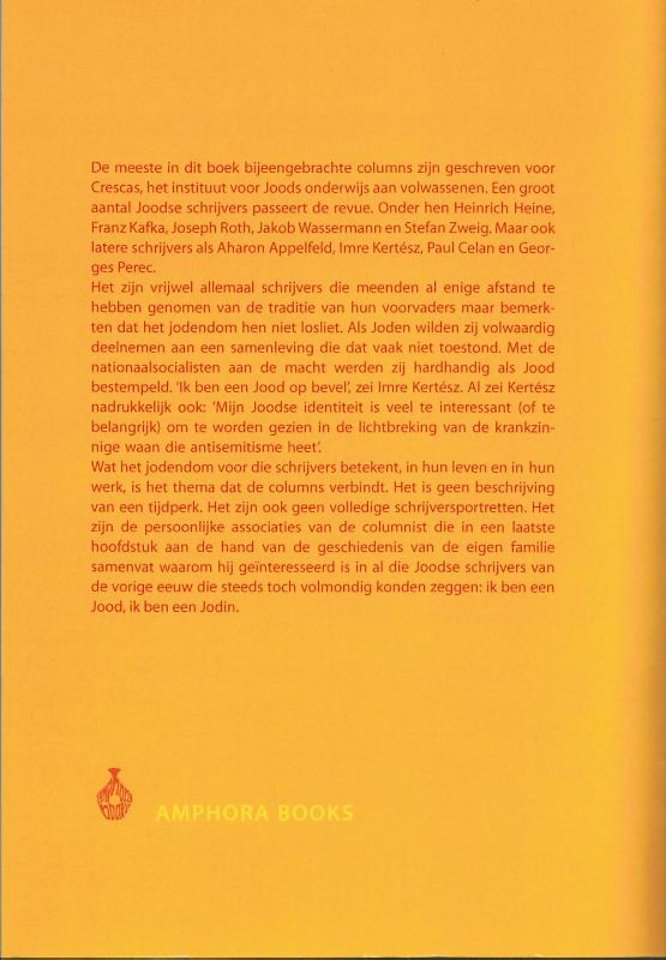Wat het Jodendom voor die schrijvers betekent, in hun leven en in hun werk, is het thema dat de columns verbindt. Het is geen beschrijving van een tijdperk. Het zijn ook geen volledige schrijversportretten. Het zijn de persoonlijke associaties van de columnist die in een laatste hoofdstuk aan de hand van de geschiedenis van de eigen familie samenvat waarom hij geïnteresseerd is in al die Joodse schrijvers van de vorige eeuw die steeds toch volmondig konden zeggen: ik ben een Jood, ik ben een Jodin.