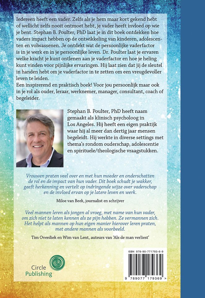 Meer over Stephan PoulterIedereen heeft een vader. Zelfs als je hem maar kort gekend hebt of wellicht zelfs nooit ontmoet hebt, je vader heeft invloed op wie je bent. Stephan B. Poulter, PhD laat je in dit boek ontdekken hoe vaders impact hebben op de ontwikkeling van kinderen, adolescenten en volwassenen. Je ontdekt wat de persoonlijke vaderfactor is in je werk en in je persoonlijke leven. Dr. Poulter laat je ervaren welke kracht je kunt ontlenen aan je vaderfactor en hoe je heling kunt vinden voor pijnlijke ervaringen. Hij laat zien dat jij de sleutel in handen hebt om je vaderfactor in te zetten om een vreugdevoller leven te leiden.