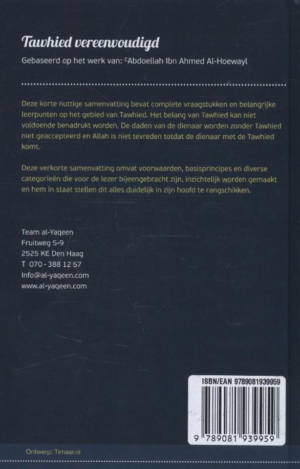 Deze korte nuttige samenvatting bevat complete vraagstukken en belangrijke leerpunten op het gebied van Tawhied. Het belang van Tawhied kan niet voldoende benadrukt worden. De daden van de dienaar worden zonder Tawhied niet geaccepteerd en Allah is niet tevreden totdat de dienaar met de Tawhied komt. Deze verkorte samenvatting omvat voorwaarden, basisprincipes en diverse categorieën die voor de lezer bijeengebracht zijn, inzichtelijk worden gemaakt en hem in staat stellen dit alles duidelijk in zijn hoofd te rangschikken.