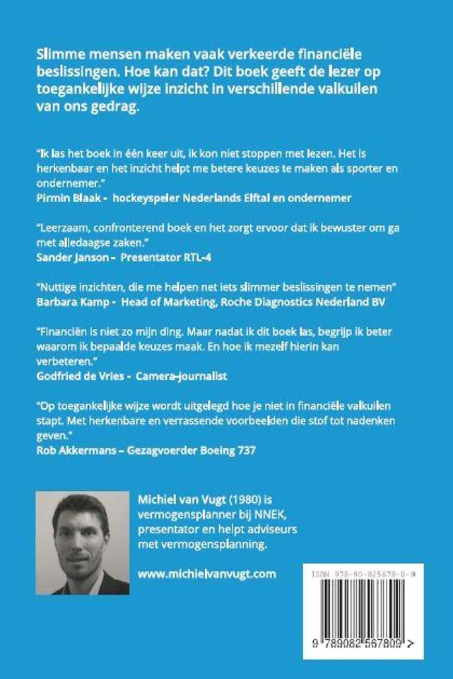 Slimme mensen maken vaak verkeerde financiële beslissingen. Hoe kan dat? Dit boek geeft de lezer op toegankelijke wijze inzicht in verschillende valkuilen van ons gedrag. Verwacht geen financiële tips of trucs, maar leer waarom je met de massa beweegt, wat de gevolgen zijn van overmoed en waarom verlies zoveel aversie oproept. De 30 hoofdstukken helpen je minder fouten te maken en niet alleen op financieel gebied, maar misschien ook bij belangrijke keuzes in je leven. Wat anderen van het boek vinden, lees je hieronder.