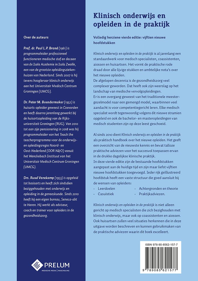 Klinisch onderwijs en opleiden in de praktijk is al jarenlang een standaardwerk voor medisch specialisten, coassistenten, aiossen en huisartsen. Het vormt de praktische rode draad door alle lijvige stukken en ambtelijke nota’s over het nieuwe opleiden.