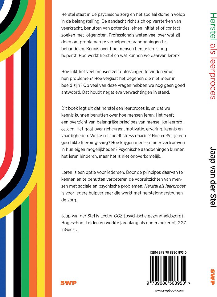 Leren is een optie voor iedereen. Door de principes daarvan te kennen en te benutten verbeteren de vooruitzichten van mensen met sociale en psychische problemen. Herstel als leerproces is voor iedere hulpverlener die werkt met herstelondersteunende zorg.