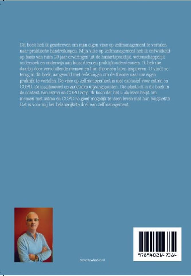 Dit boek heb ik geschreven om mijn eigen visie op zelfmanagement te vertalen naar praktische handreikingen. Mijn visie op zelfmanagement heb ik ontwikkeld op basis van ruim 20 jaar ervaringen uit de huisartspraktijk, wetenschappelijk onderzoek en onderwijs aan huisartsen en praktijkondersteuners. Ik heb me daarbij door verschillende mensen en hun theorieën laten inspireren. U vindt ze terug in dit boek, aangevuld met oefeningen om de theorie naar uw eigen praktijk te vertalen. De visie op zelfmanagement is niet exclusief voor astma en COPD. Ze is gebaseerd op generieke uitgangspunten. Die plaats ik in dit boek in de context van astma en COPD zorg. Ik hoop dat het u als lezer helpt om mensen met astma en COPD zo goed mogelijk te leren leven met hun longziekte. Dat is voor mij het belangrijkste doel van zelfmanagement.