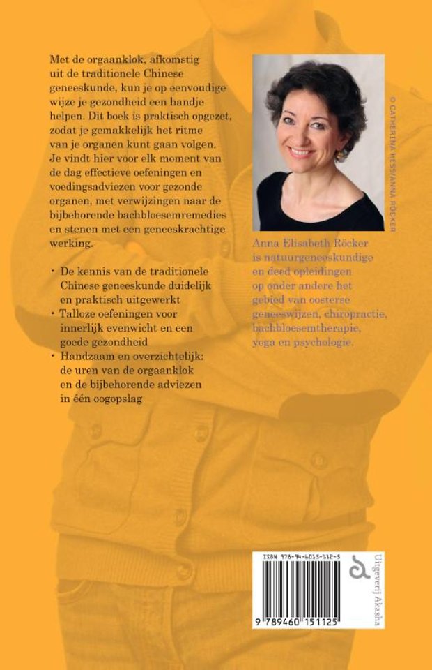 Met de orgaanklok, afkomstig uit de traditionele Chinese geneeskunde, kun je op eenvoudige wijze je gezondheid een handje helpen. Dit boek is praktisch opgezet, zodat je gemakkelijk het ritme van je organen kunt gaan volgen. Je vindt hier voor elk moment van de dag effectieve oefeningen en voedingsadviezen voor gezonde organen, met verwijzingen naar de bijbehorende bachbloesemremedies en stenen met een geneeskrachtige werking.