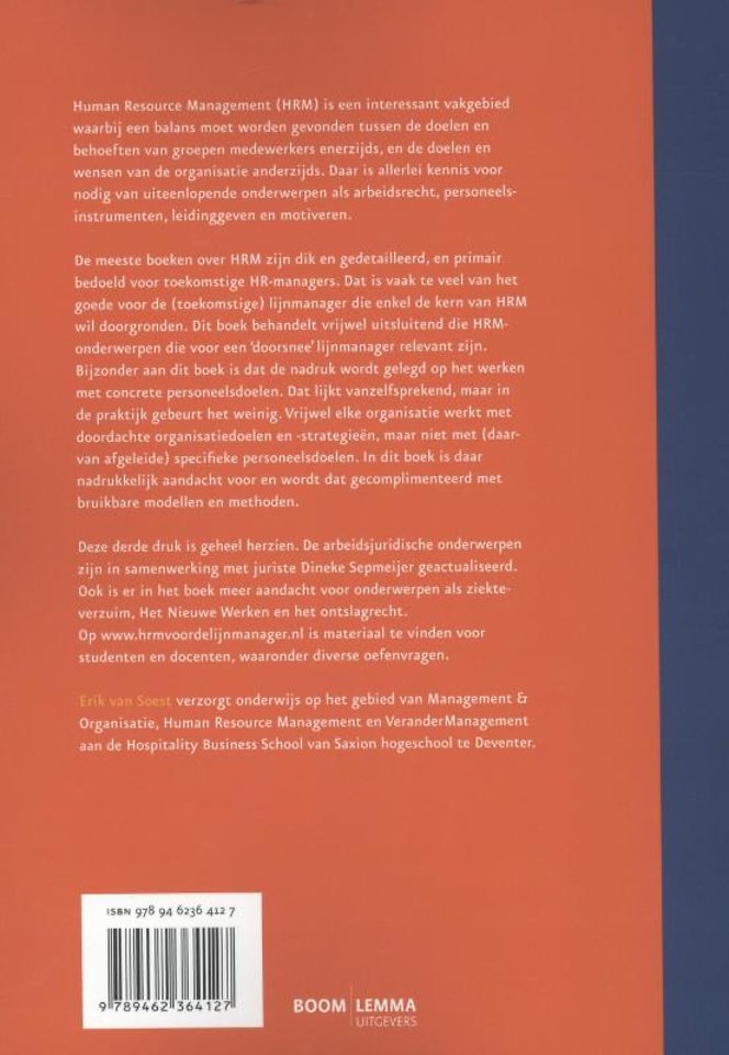 De meeste boeken over HRM zijn dik en gedetailleerd, en primair bedoeld voor toekomstige HR managers. Dat is vaak te veel van het goede voor de (toekomstige) lijnmanager die enkel de kern van HRM wil doorgronden. Dit boek behandelt vrijwel uitsluitend die HRM-onderwerpen die voor een ‘doorsnee’ lijnmanager relevant zijn.