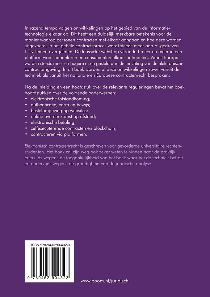 In dit boek worden al deze ontwikkelingen zowel vanuit de techniek als vanuit het nationale en Europese contractenrecht besproken.
