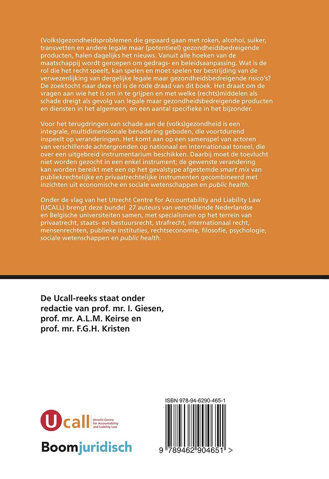 (Volks)gezondheidsproblemen die gepaard gaan met roken, alcohol, suiker, transvetten en andere legale maar (potentieel) gezondheidsbedreigende producten, halen dagelijks het nieuws. Vanuit alle hoeken van de maatschappij wordt geroepen om gedrags- en beleidsaanpassing. Wat is de rol die het recht speelt, kan spelen en moet spelen ter bestrijding van de verwezenlijking van legale maar gezondheidsbedreigende risico’s? De zoektocht naar deze rol is de rode draad van dit boek. Het draait om de vragen aan wie het is om in te grijpen en met welke (rechts)middelen als schade dreigt als gevolg van legale maar gezondheidsbedreigende producten en diensten in het algemeen, en een aantal specifieke in het bijzonder.