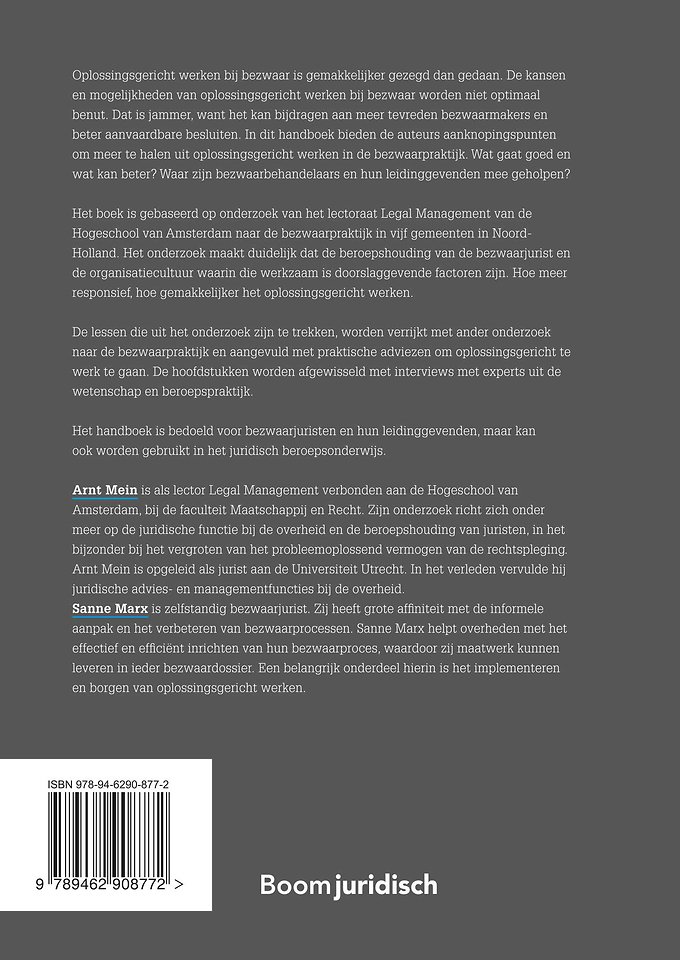 Meer over de auteursHandboek oplossingsgericht werken bij bezwaar